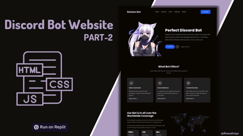 Discord Bot Website Landing page template for promoting a custom Discord bot, inspired by modern bot marketing sites.