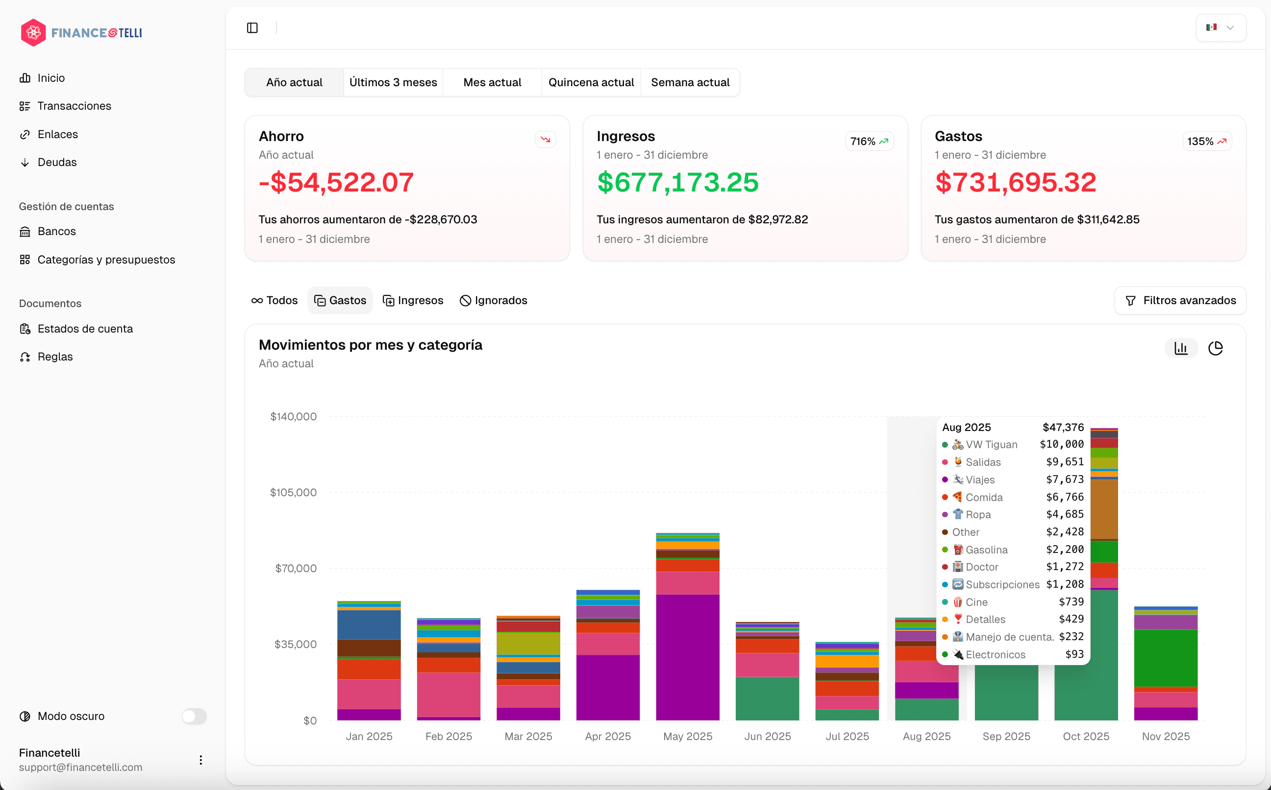 Financetelli Saas platform to manage and track financial goals and spending, with the help of AI.