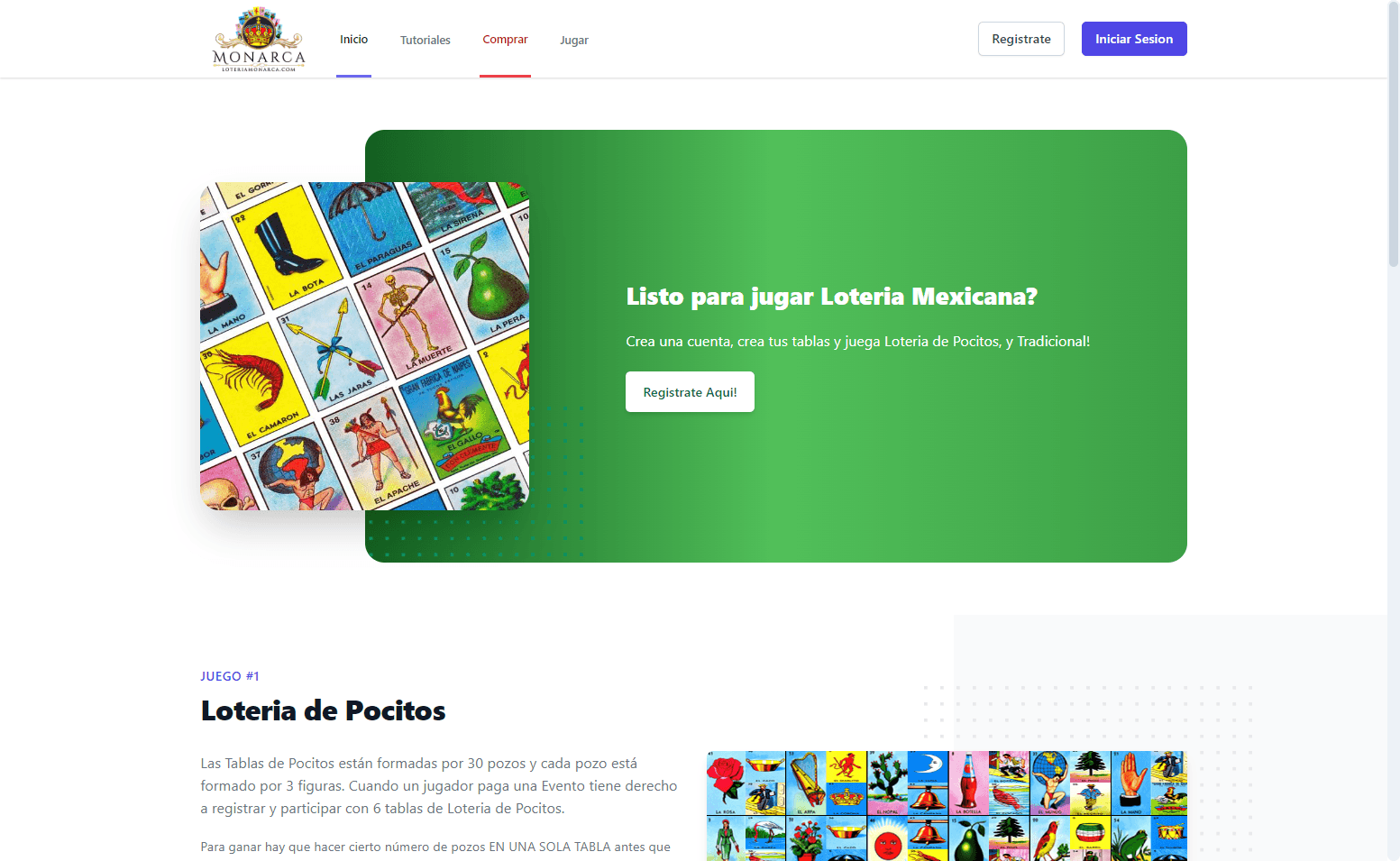 Loteria Monarca online platform to register and play Loteria Mexicana.
