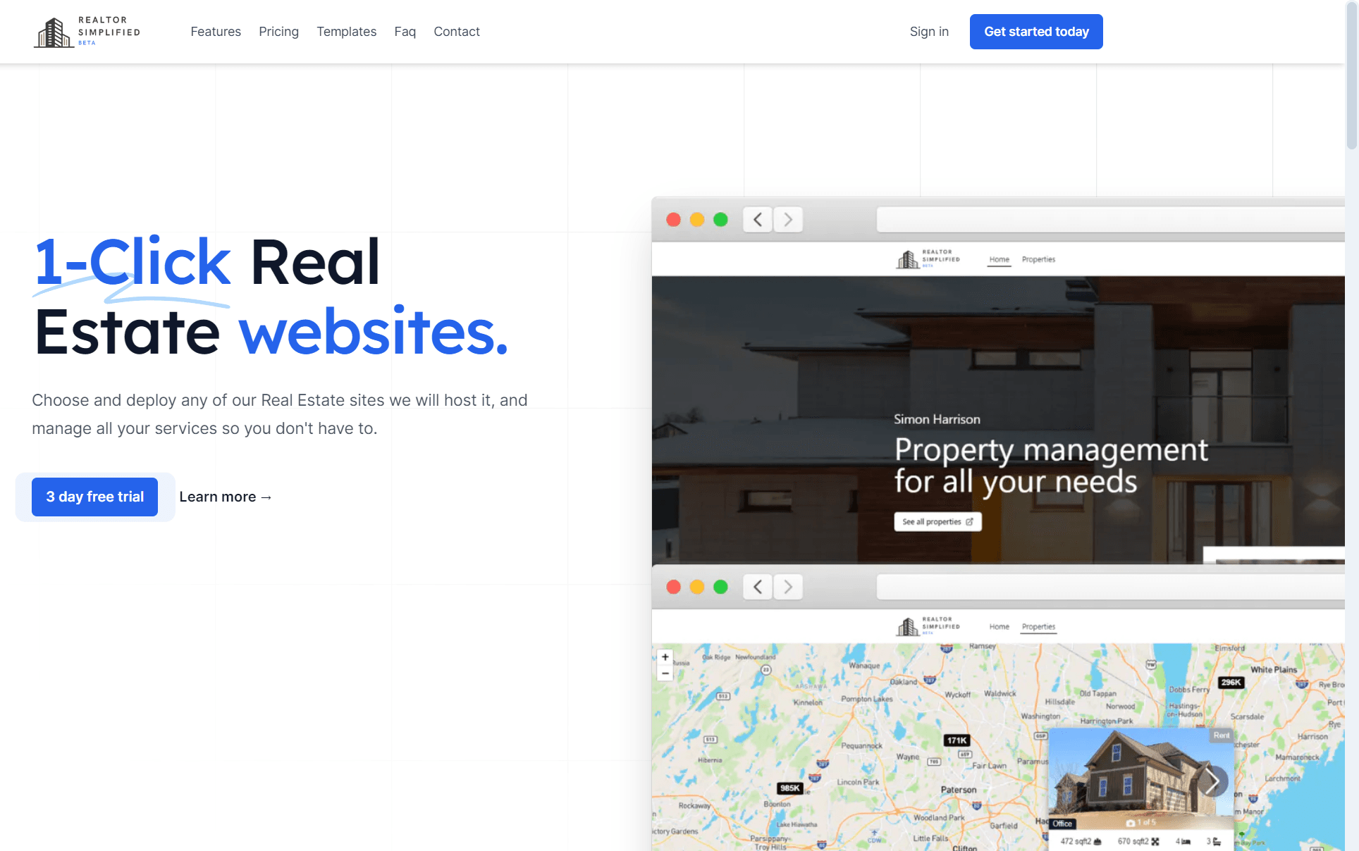 Realtor Simplified saas platform that enables realtors to deploy a professional website in minutes.
