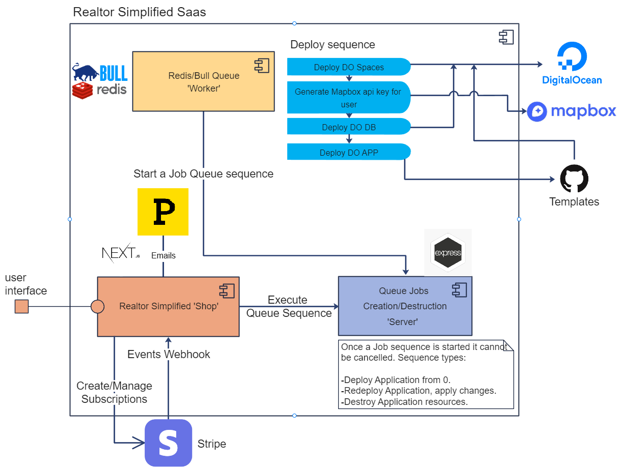 Realtor Simplified Saas is split in 3 different systems. Each of this systems is hosted in their own server and they communicate through apis.